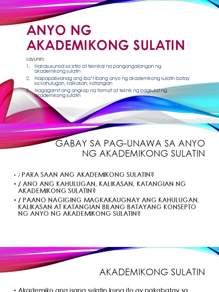Anyo Ng Akademikong Sulatin Pdf