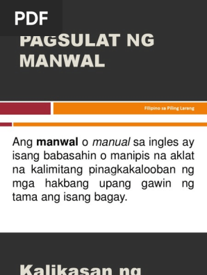 Kadalasang nagtataglay rin ito ng panimula upang maipaliwanag nang maayos ang nilalaman ng manwal. 13102020 October 14 2020. Manwal - naglalaman ng ibat ibang impormasyon hinggil sa isang produkto kalakaran sa isang organisasyon o samahan o kayay mga detalyeng naglilinaw sa proseso estruktura at iba pang mga detalyeng nagsisilbing gabay sa mga magbabasa nito.