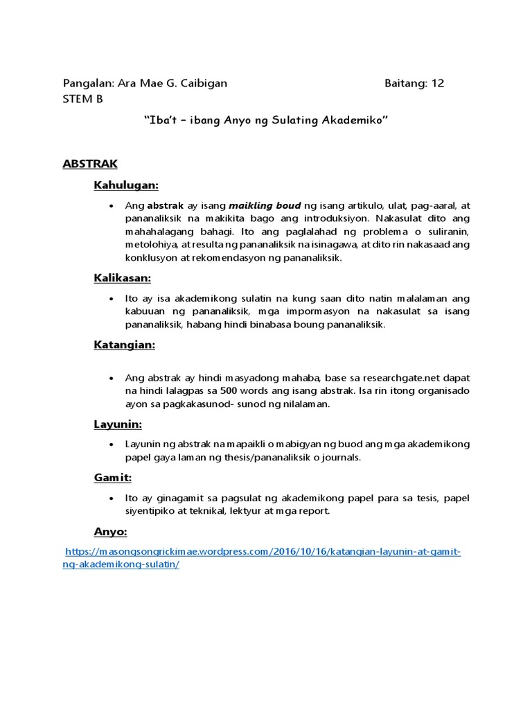 Ayon nakikilala ang ibat ibang akademikong sulatin abstrak.